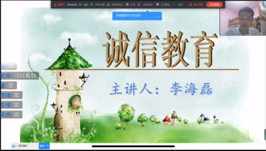 2020年6月15日下午,体育学院利用钉钉办公软件开展了关于诚信教育的主题班会。班会由李海磊老师主持,体育学院全体同学参与。